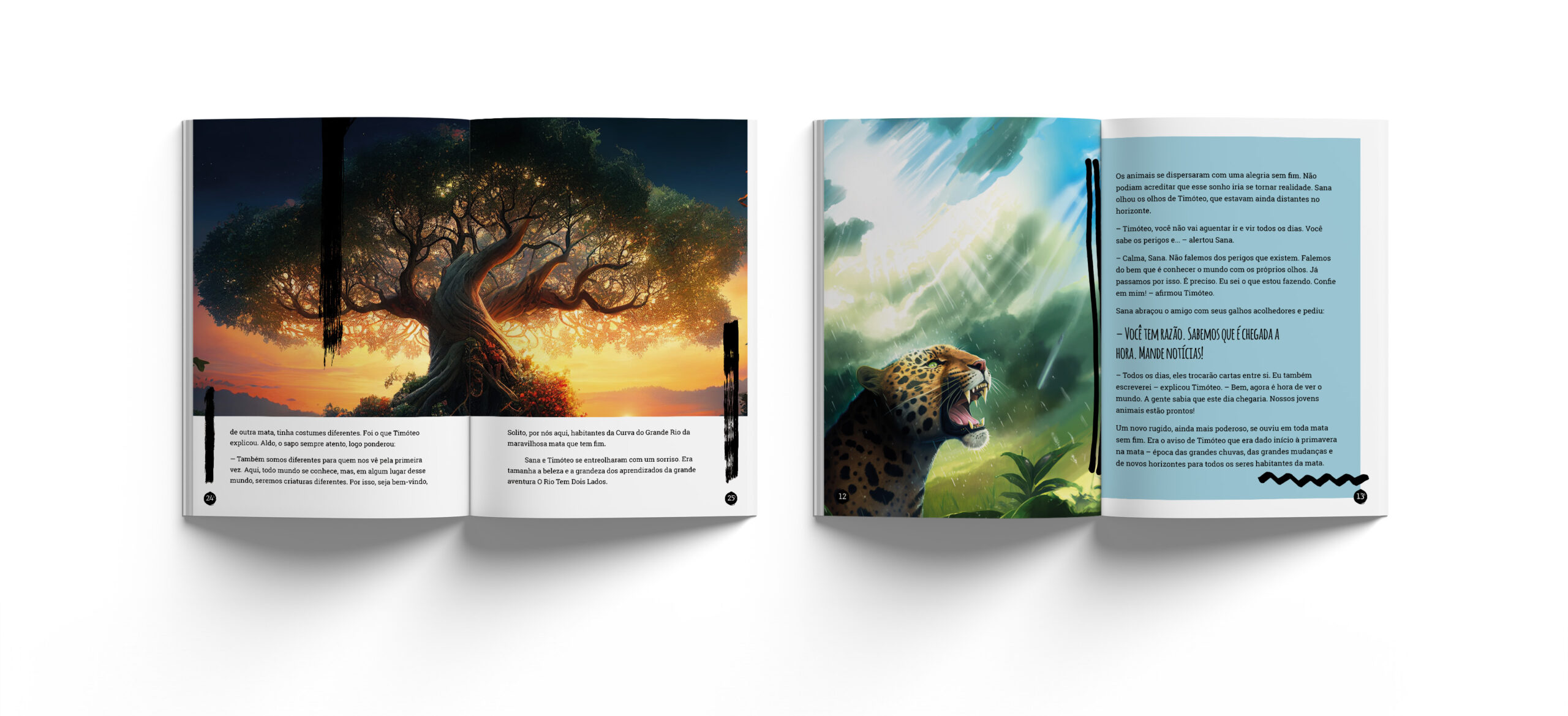 Aqui, imagens e texto se harmonizam na página, criando ritmo e equilíbrio.
